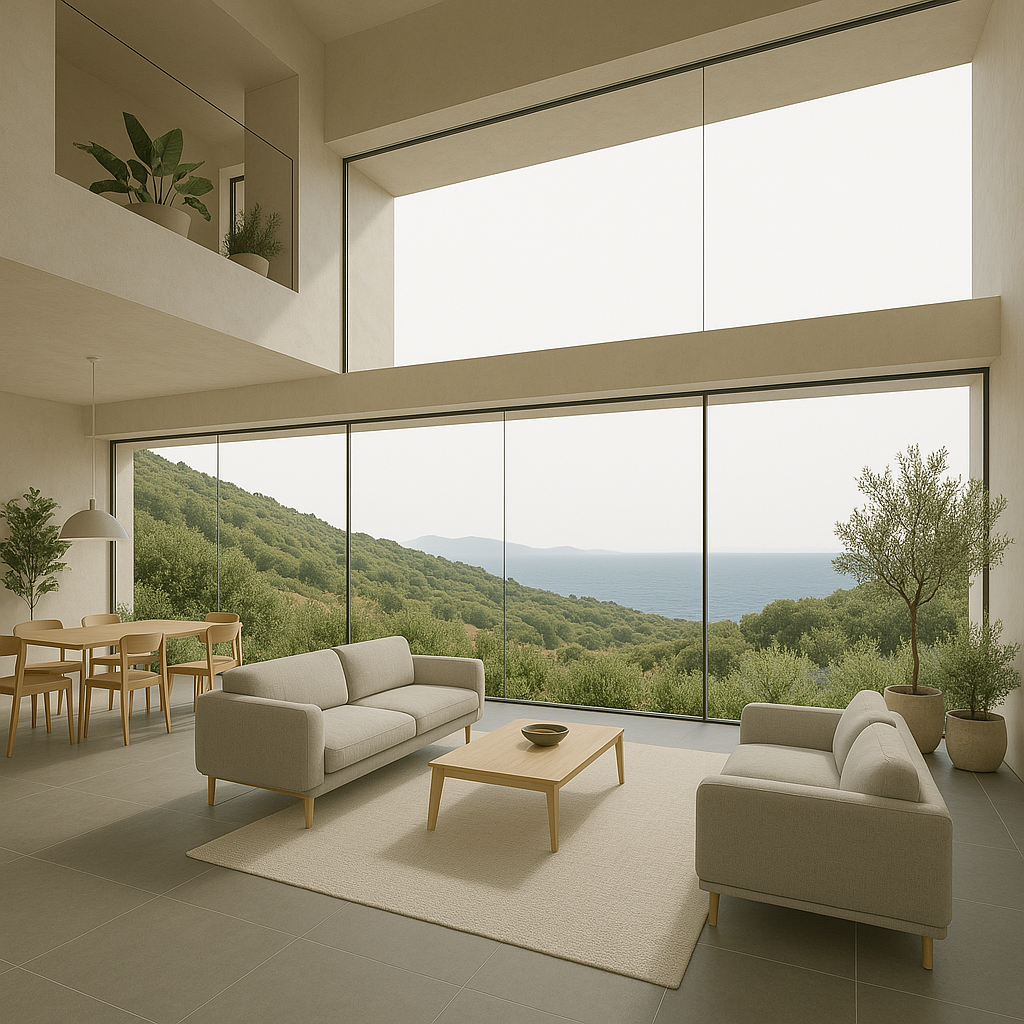 El diseño privilegia la relación con el entorno natural mediante fachadas ventiladas, vegetación integrada y grandes ventanales que difuminan el límite entre interior y exterior.